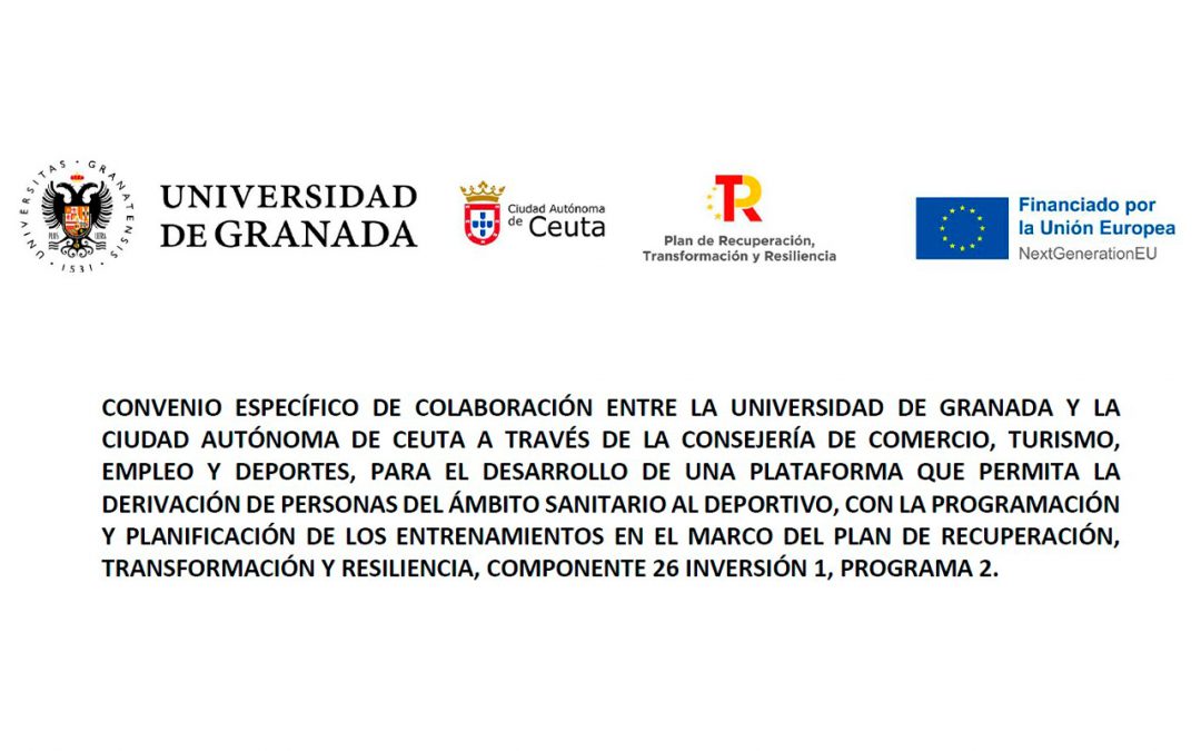 El pasado 21 de febrero de 2025, después de muchos meses de trabajo, por fin se consiguió la firma del convenio con la Ciudad Autónoma de Ceuta. La Universidad de Granada y la Ciudad Autónoma de Ceuta, a través de la Consejería de Comercio, Turismo, Empleo y Deportes, han suscrito un convenio de colaboración para diseñar una plataforma que facilite la derivación de pacientes del ámbito sanitario al deportivo, en el marco del Plan de Recuperación, Transformación y Resiliencia. En el proyecto se empleará la plataforma digital para la promoción integral de la salud, desarrollada por el grupo de investigación CTS-545 «Biomecánica y Ergonomía para la Salud y el Deporte» de la UGR, que integra asesores virtuales para la planificación de entrenamientos y la educación sanitaria. Esta iniciativa impulsará la prescripción y el seguimiento de la actividad física como herramienta terapéutica, reforzando así la colaboración entre ambas instituciones en beneficio de la salud de la ciudadanía de Ceuta. Sin duda alguna es un hecho que favorecerá y ayudará a los intereses de la Cátedra ReceDxt.